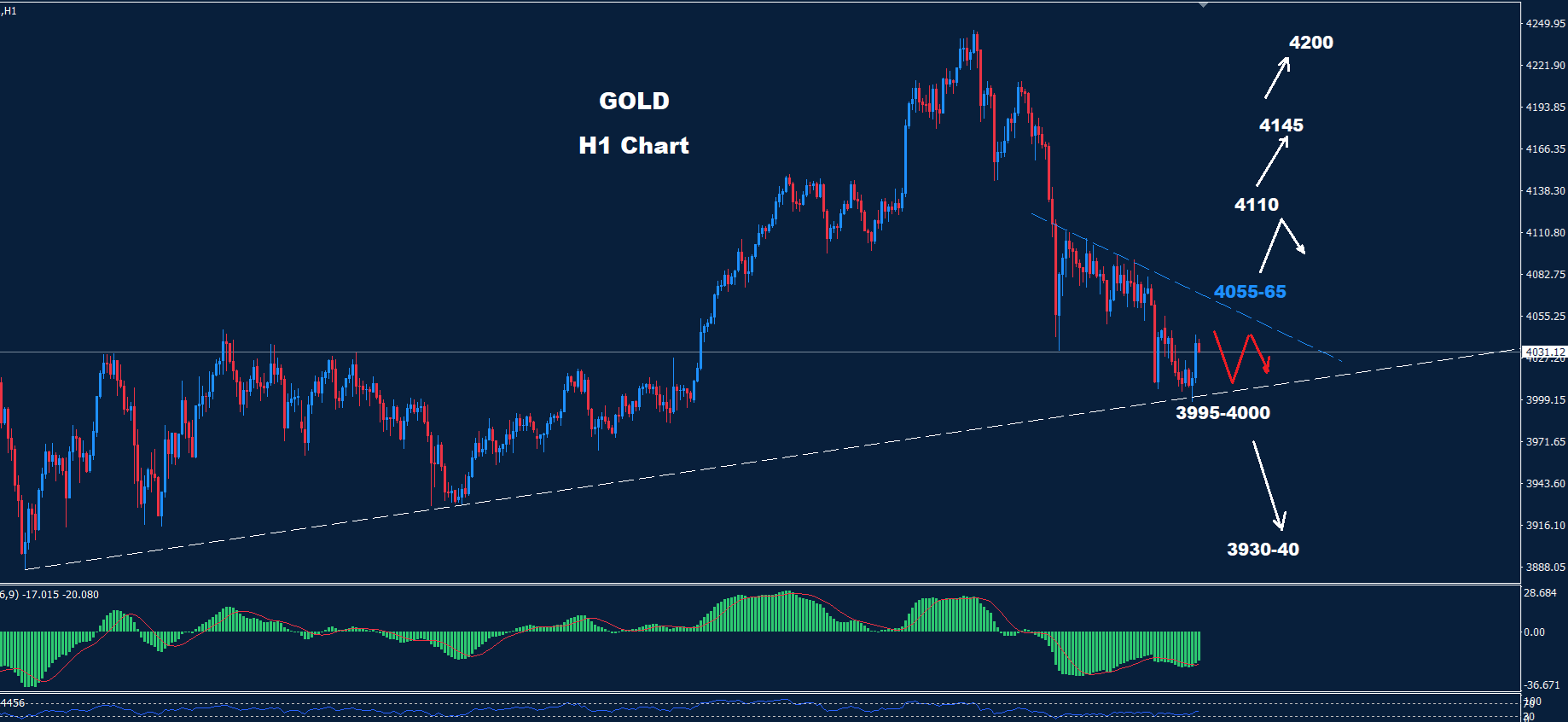 Gold broke below 4045 yesterday and managed today to test the target and support zone of 3995-4000.