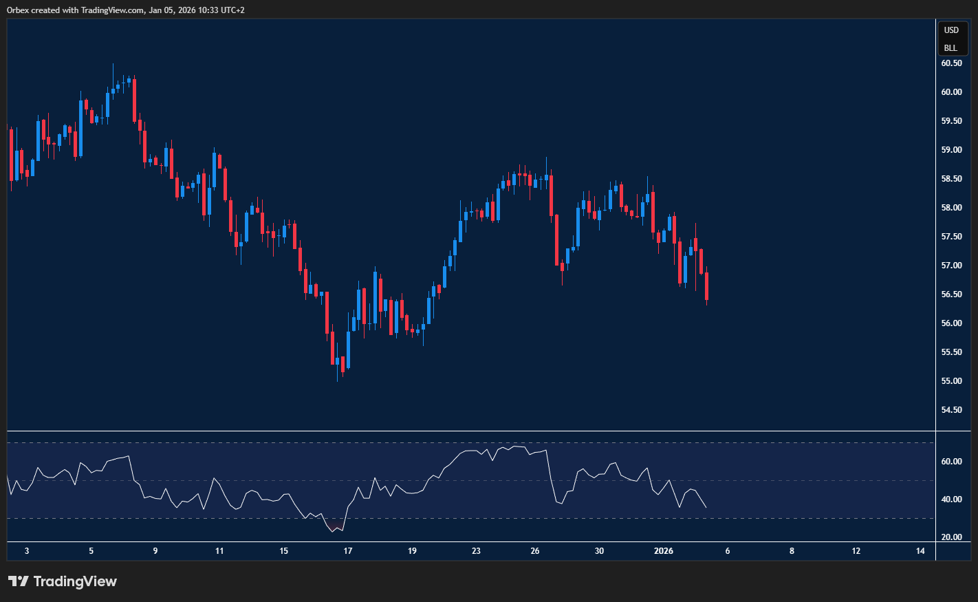 WTI maintained its bearish bias as prices attempted to stop sliding. The commodity is stabilising after giving up some gains from the bullish rally that began at the end of December. The bounce has come under pressure at 56.50 as sellers try to double down. 56.00 is a significant level to keep a potential rebound valid and prevent a deeper correction. On the upside, a decisive breakout could attract momentum buying with 57.40 as a potential target.