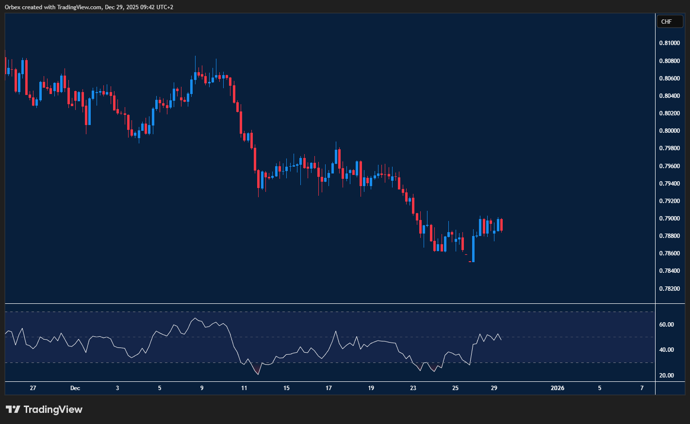 The US dollar took a step back as we move towards the final days of 2025. A move above the daily resistance at 0.7850 has halted the bearish momentum that has persisted for most of December. A brief consolidation has now lifted offers towards 0.7900, and 0.7960 at the previous swing high is the next level to see whether the bulls will stay in the game. On the downside, the level of 0.7840 at the latest bounce is a firm support to hold on to.